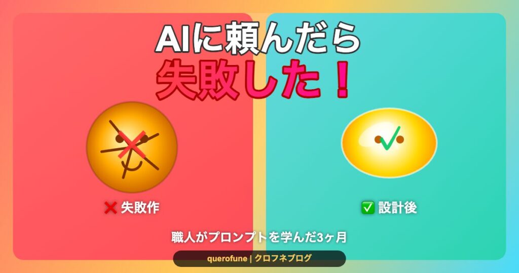 「AIに頼んだら失敗した」から始まった3ヶ月。クレープ職人がプロンプトエンジニアリングを独学し、HACCP管理・レシピ計算・SNS分析を自動化した実録。失敗の構造と転換点を完全公開。